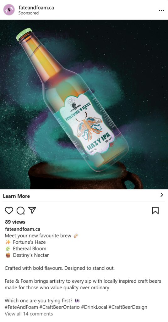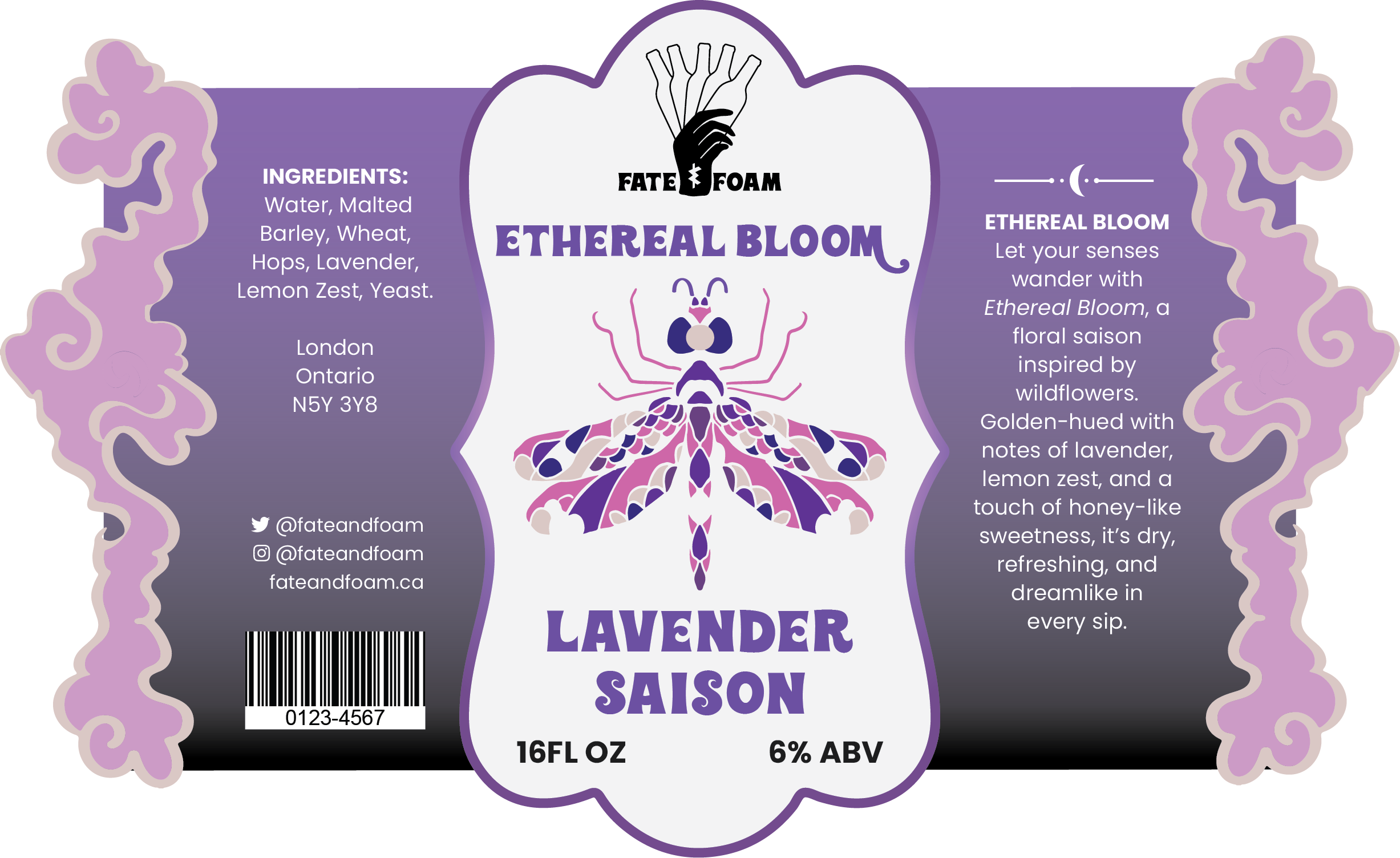 Fate & Foam is a conceptual craft beer brand created for Ontario’s craft beer market, targeting consumers 25+ who value quality, creativity, and locally made products. The brand combines bold colour palettes, expressive typography, and nature-inspired illustration to create labels that stand out from mainstream beer designs.